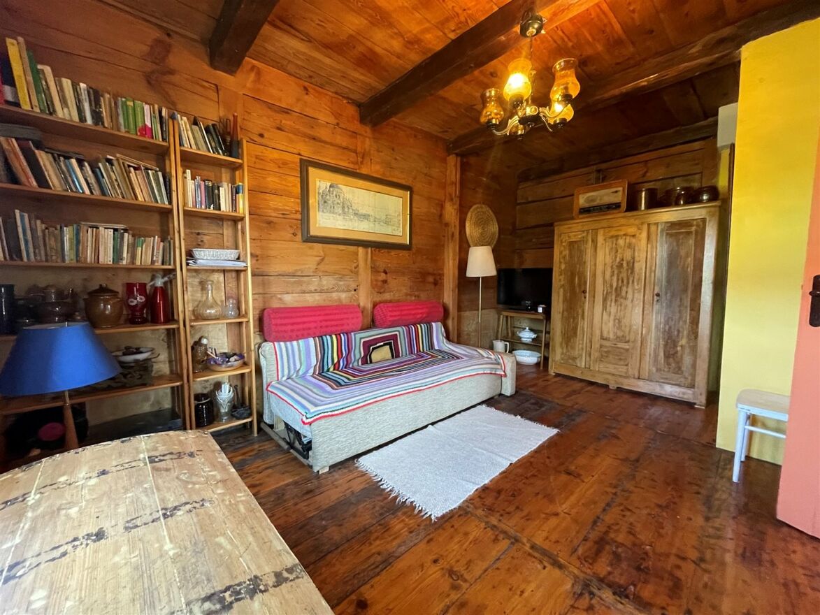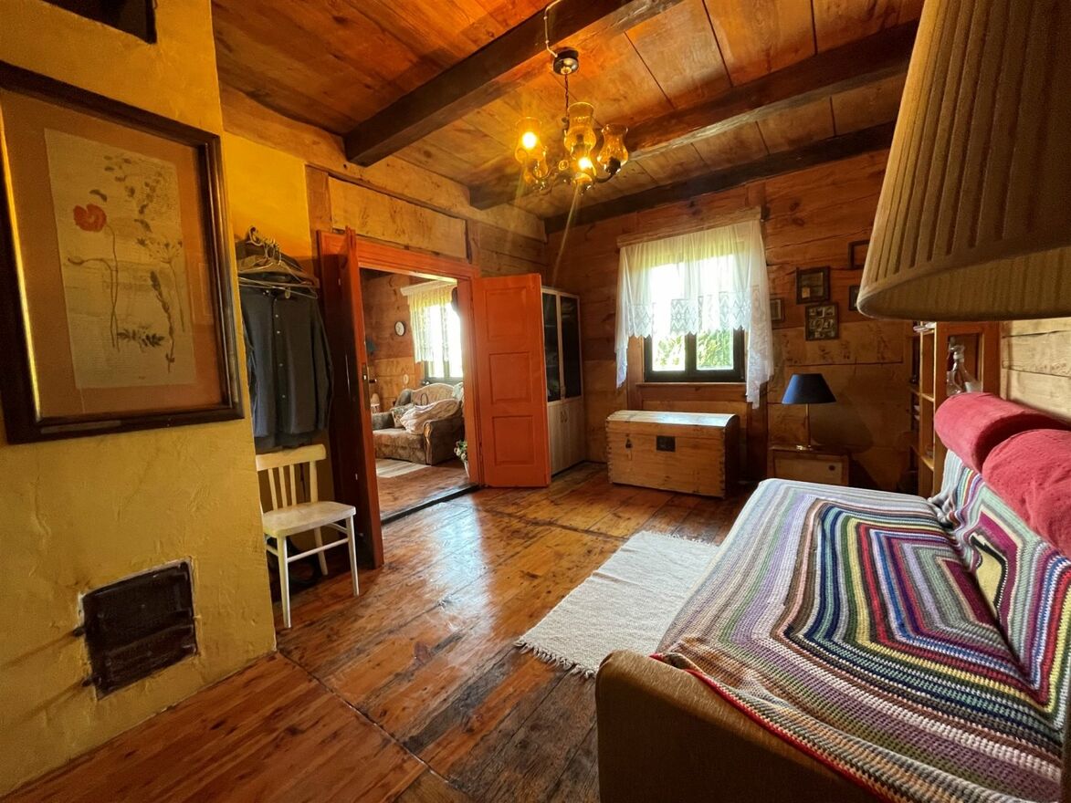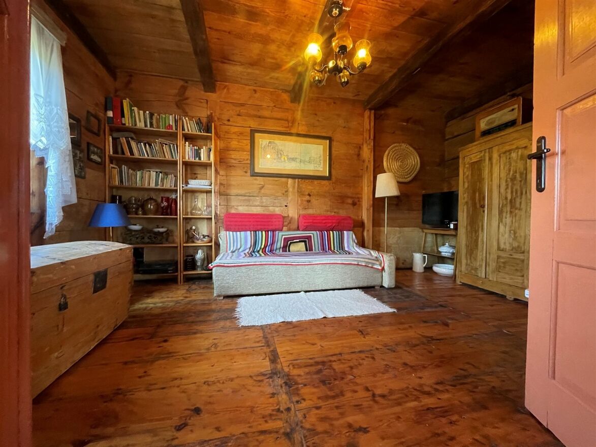 - dwa pokoje połączone dużymi drzwiami. W jednym z pokoi kominek, z którego ciepło jest rozprowadzone po pozostałych pomieszczeniach.
