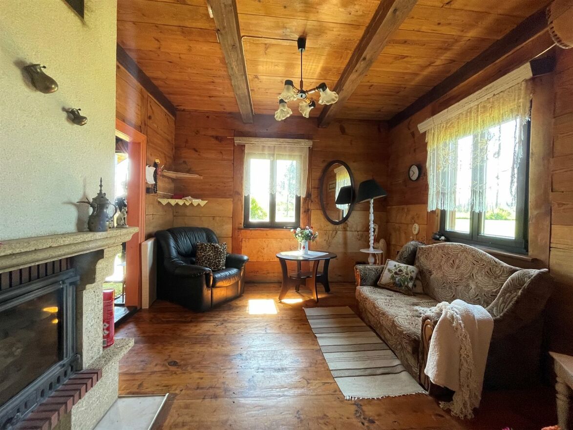 Działka o powierzchni około 4,5 ha zabudowana jest murowanymi budynkami gospodarczymi o powierzchni po około 80 mkw oraz urokliwym drewnianym całorocznym domem o powierzchni zabudowy około 65 mkw.